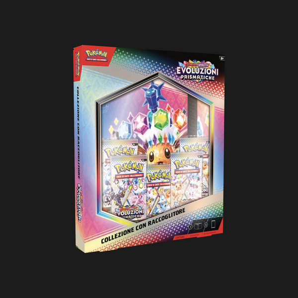 La collezione con raccoglitore dell’espansione Scarlatto e Violetto - Evoluzioni Prismatiche del GCC Pokémon contiene: